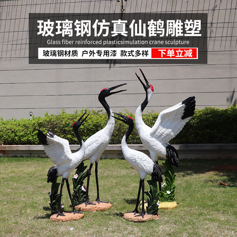 Outdoor Fiberglass Emulation Fairy Crane Sculpture Dantop Crane Garden Fake Mountain Build View Pool Animal Adornment Big Swing Piece