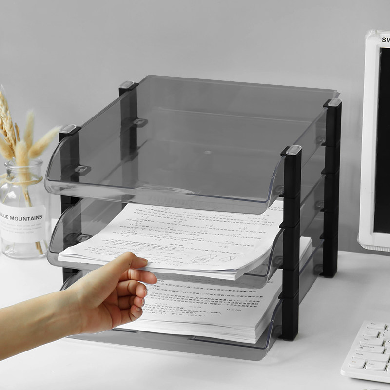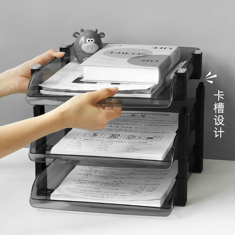 Transparent Document Seat Three-layer plastic transverse box student desktop archives for collecting layer shelves for multi-disc baskets