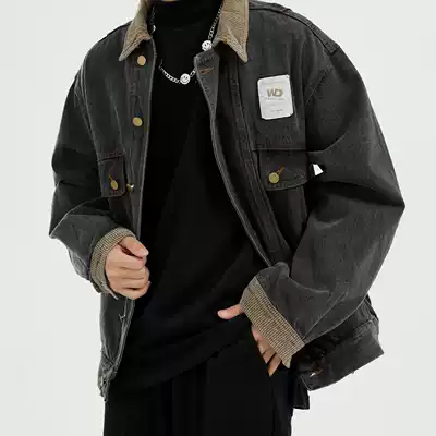 Dosho men's washed vintage old denim jacket jacket Korean solid color loose casual top men's and women's models