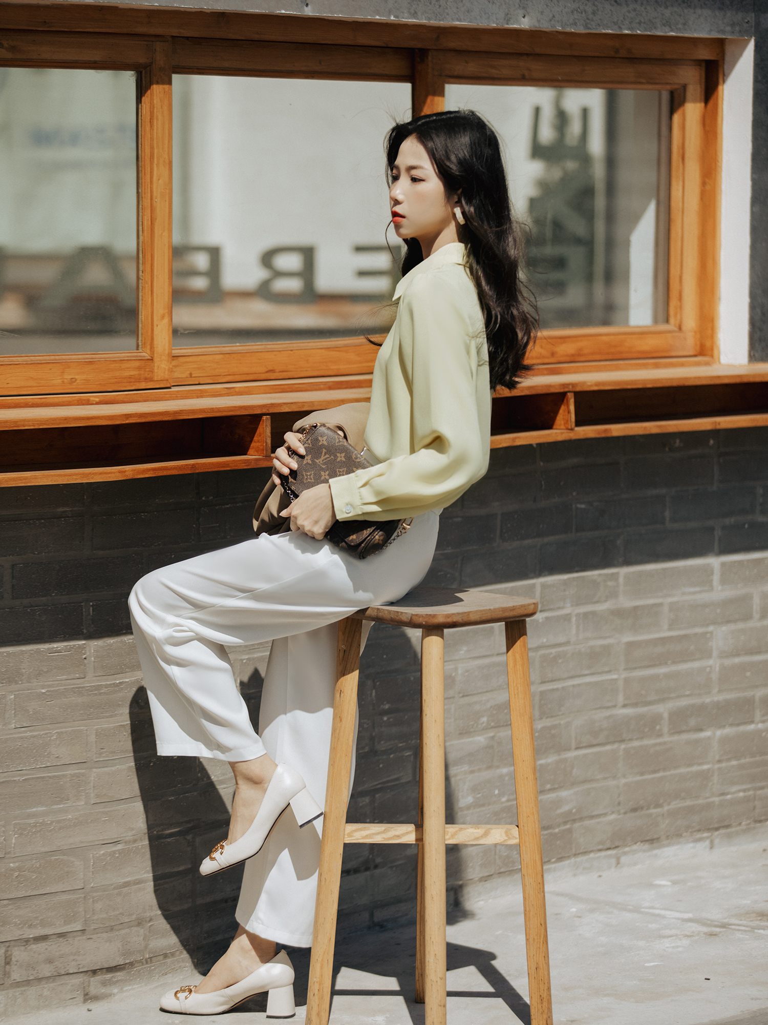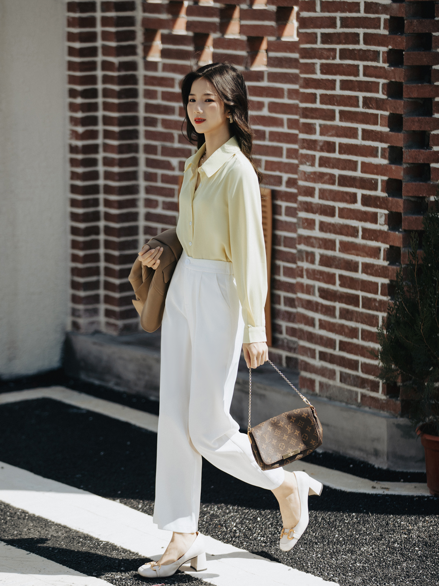 Lacquer quantity One cut sub long pants woman Summer thin section white snow spinning loose casual pants with high broadlegged pants 0413