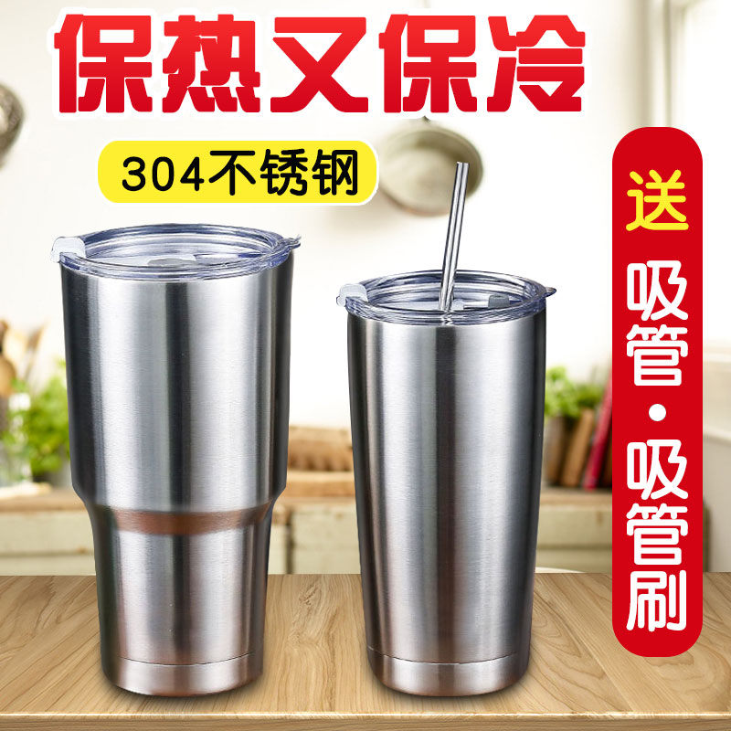 304 stainless steel water glass with lid oversized capacity double car insulated straw cup Coke ice bully monolayer cup-Taobao