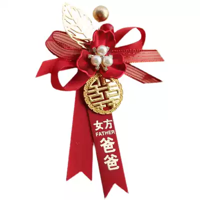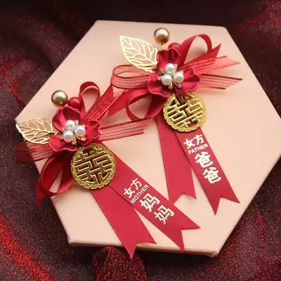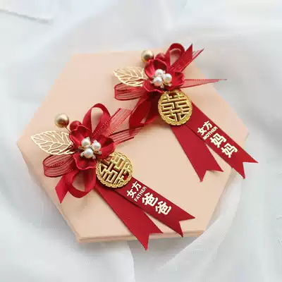Chinese red brooch bride and groom parents gift box bridesmaid full corsage festive flower wedding