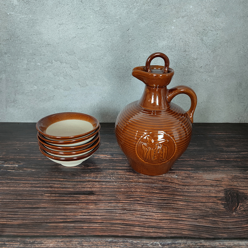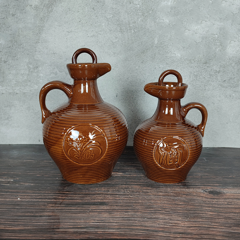 Renaissance pot ceramic bottle with handbottle Japanese style antique long mouth sealed wine cans small oil kettle household