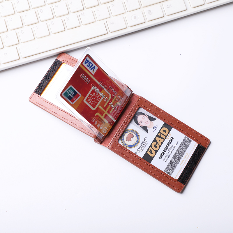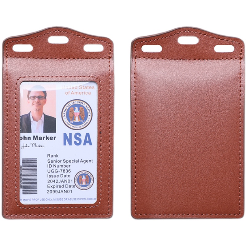Real leather Four-position anti-degaussing work certificate Bull Leather Employee Chest sleeve anti-interference artificial card sleeve upscale hanging hangover
