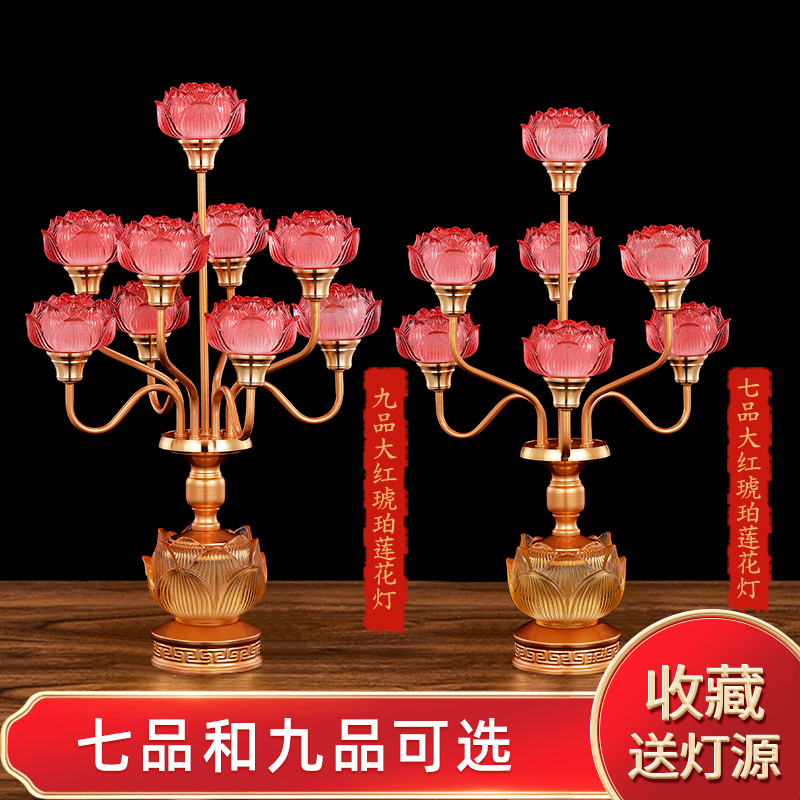 Red amber lotus lamp Seven red amber lotus lamp Nine crystal Lotus lamp Seven Crystal Lotus lamp Nine Shengshi Lotus Lamp Seven Shengshi Lotus Lamp Nine Glass Lotus lamp