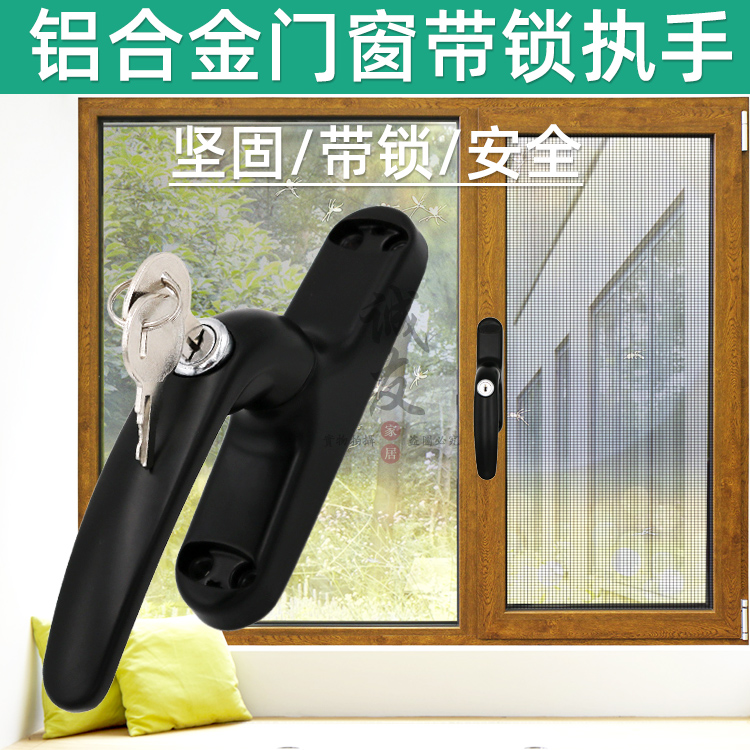 Aluminum alloy outer casement window handle with lock and broken bridge door transmission handle with key Inner window handle 105 hole spacing