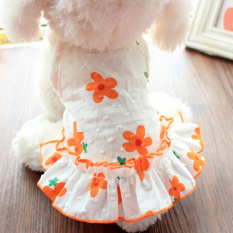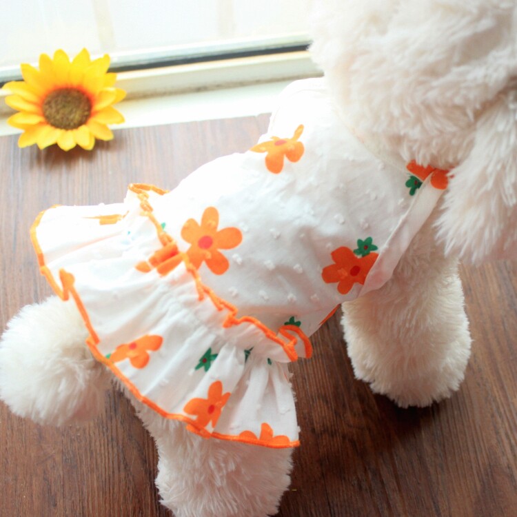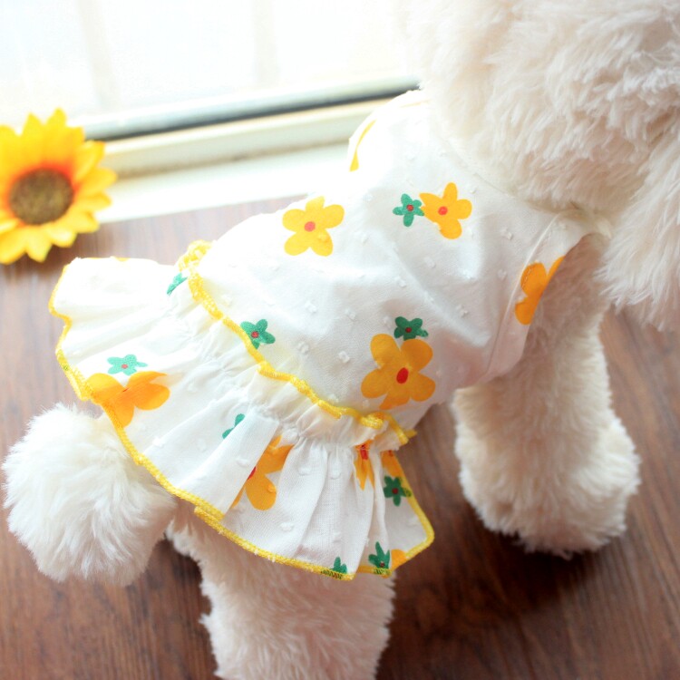 Dog princess skirt ins flower sunscreen teddy bomei cat summer thin pet clothes small dog summer dress