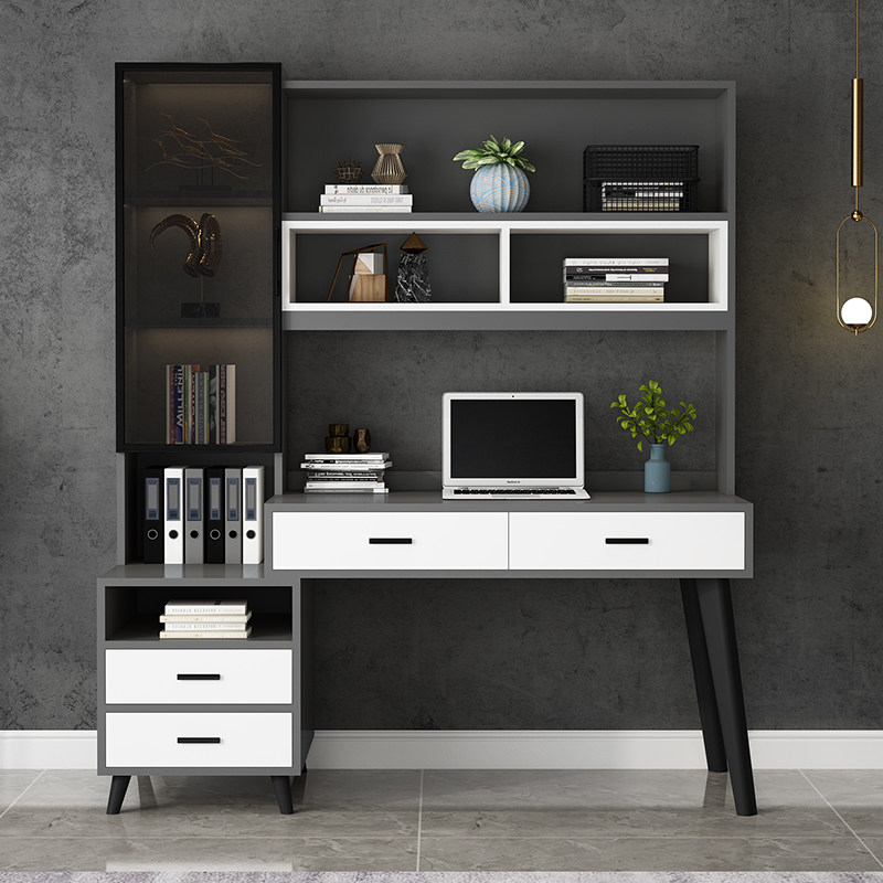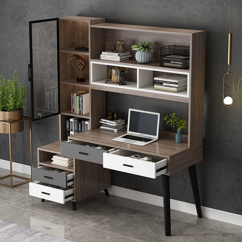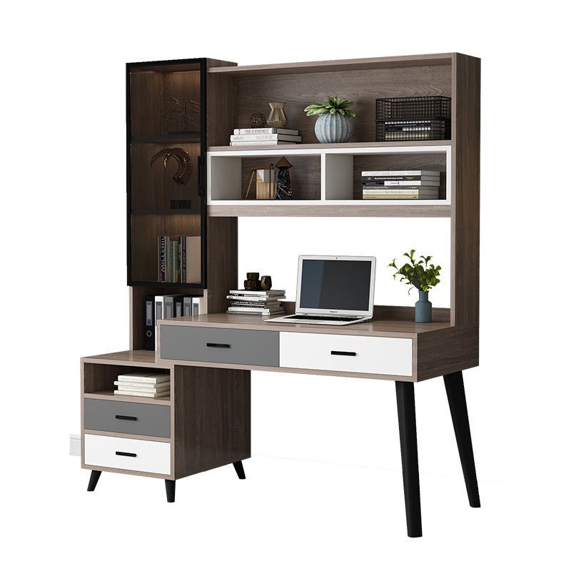 Solid wood computer desk Desk Bookshelf bookcase Combination Italian desk Home bedroom table Multi-function study table
