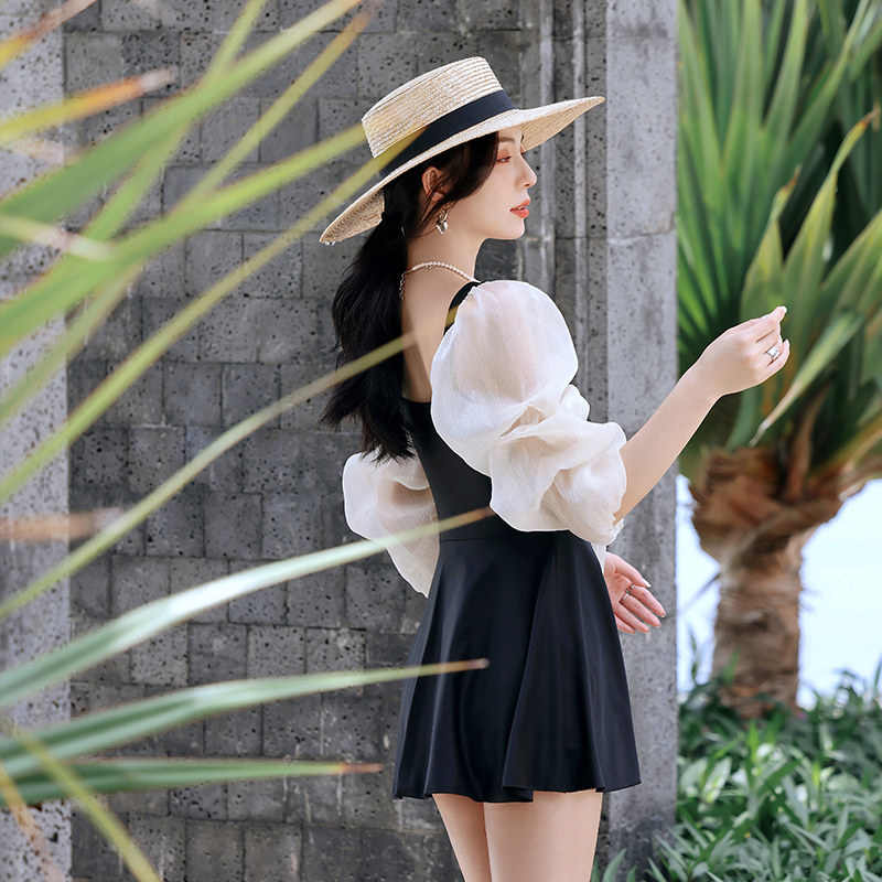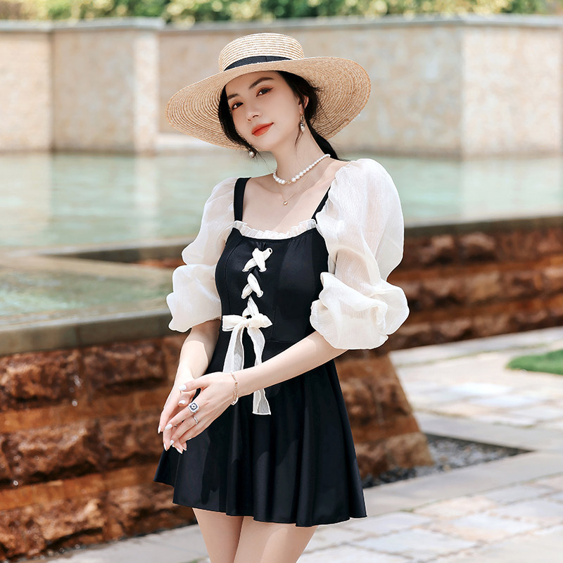 Swimwear women's summer 2021 new cover belly thin fairy fan Korea ins women sexy one-piece large size swimsuit