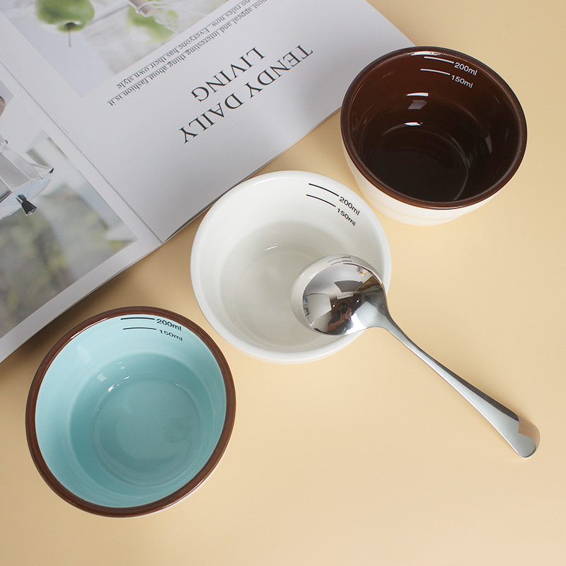 Thickened Ceramic Cup Measuring Bowl SCAA Professional Competition Coffee Standard Evaluation Bowl 200ml Stainless Steel Cup Measuring Spoon