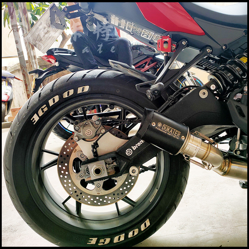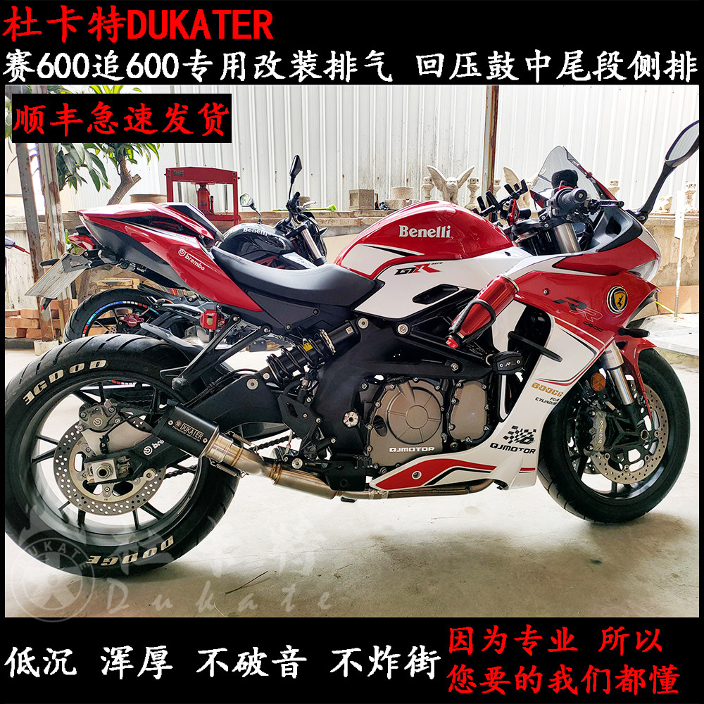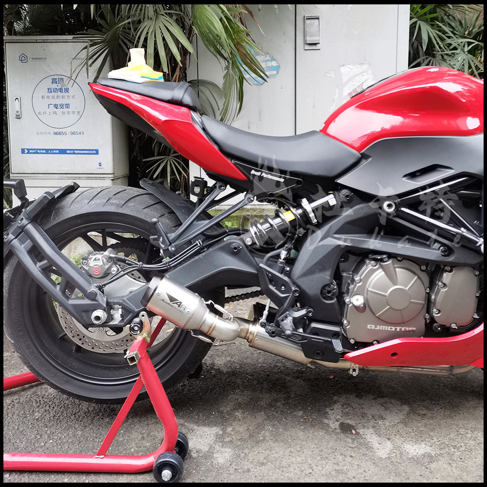 Suitable for the new Qianjiang QJ Race 600 exhaust pipe modified round lamp chasing 600 exhaust back pressure drum middle tail section side row