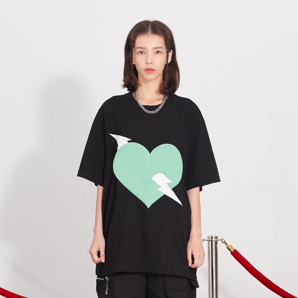 PCLP Lightning Love Trend Printed Short Sleeve Men's National Tide Card Pure Cotton Loose Half Sleeve T-shirt Man
