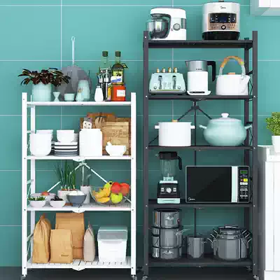Installation-free folding rack cosmetic room stainless steel floor-to-ceiling movable multifunctional multi-layer shelf kitchen