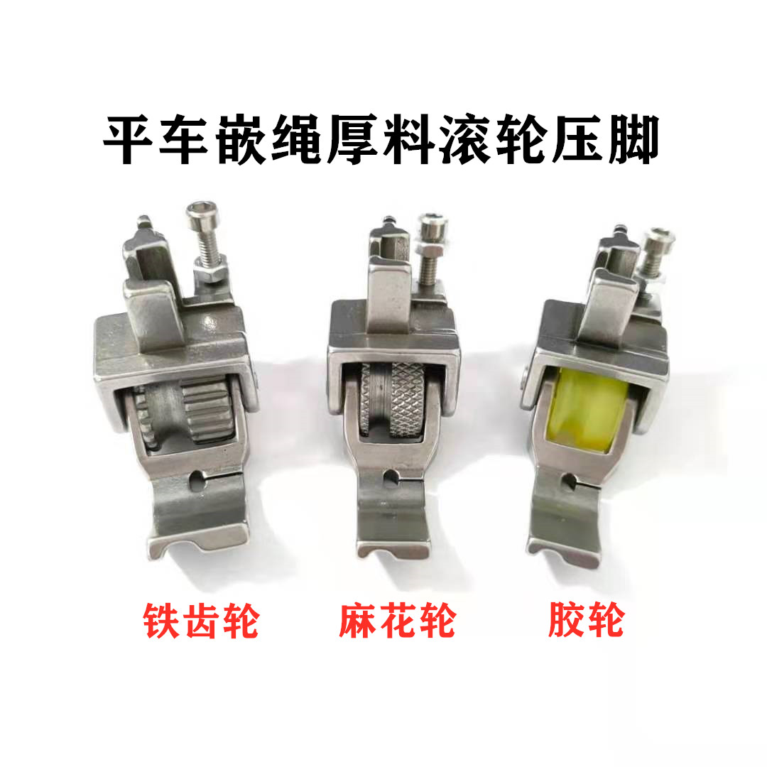 Flat car with groove inlaid rope roller presser foot Drawstring wrapped rope presser foot Leather curtain thick material inlay wheel presser foot