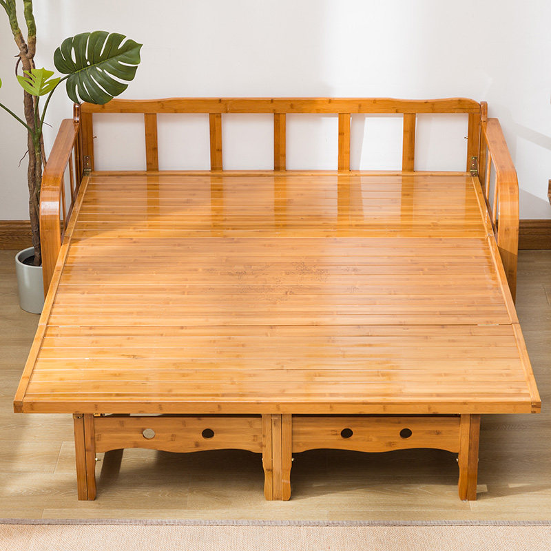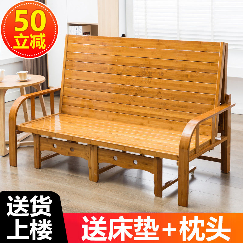 Bamboo Sofa Bed Dual-use Folding Bed Economy Type Single Double 1 5 m Home Afternoon Nap Small Household Type Multifunctional Bamboo Bed