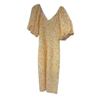 Retro floral short sleeve dress women 2021 spring and summer new age reduction Medium-length dress tide ins waist thin A- line dress