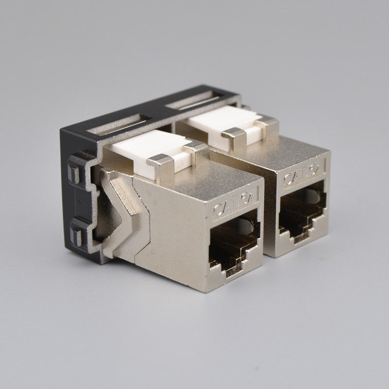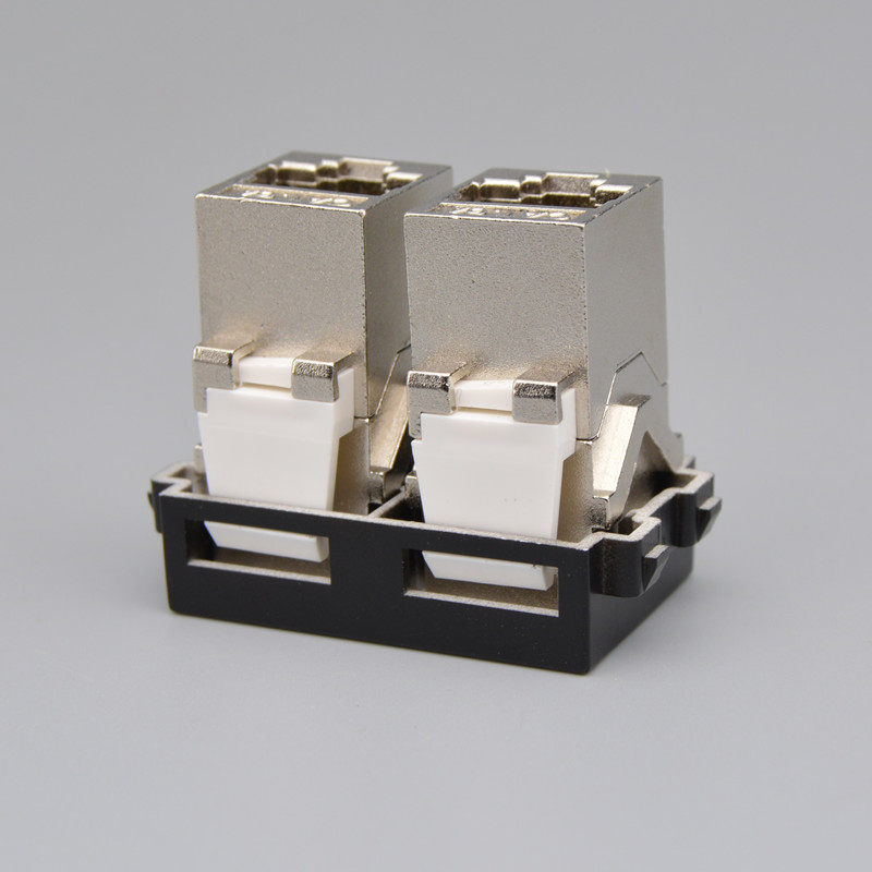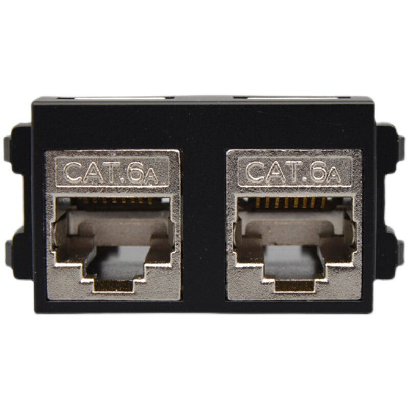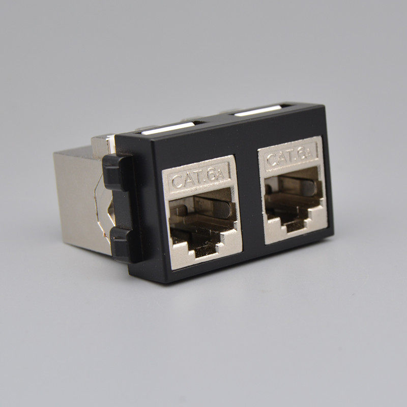 Black double hole straight insertion super six type Internet module computer jack Internet interface 2 double mouth CAT6A network route socket module
