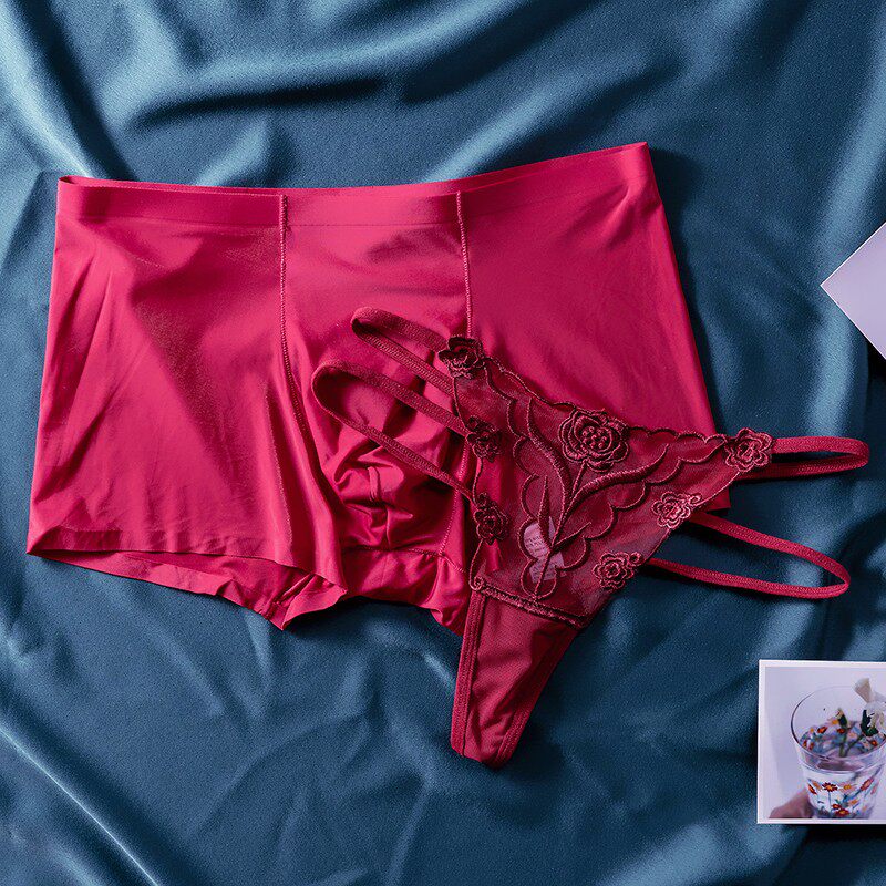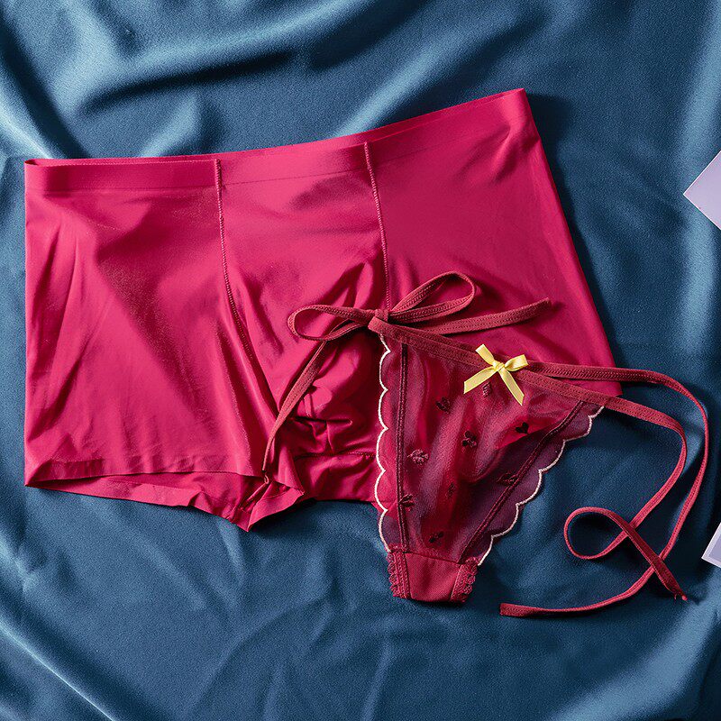 New Ice Silk Lovers Briefs Sexual Apologetes Big Red Ben Year Men And Women A Couple's Underwear Suits