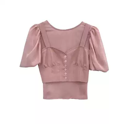 2021 summer new Korean version of design sense sling small vest inside with bubble short sleeve shirt casual short top (
