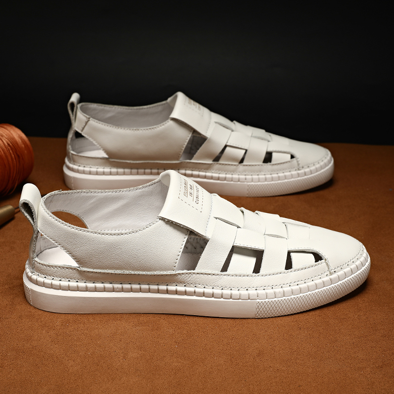Sandals men's summer 2022 new Roman genuine leather breathable casual outwear hole shoes men's hollowed-out beach shoe trends