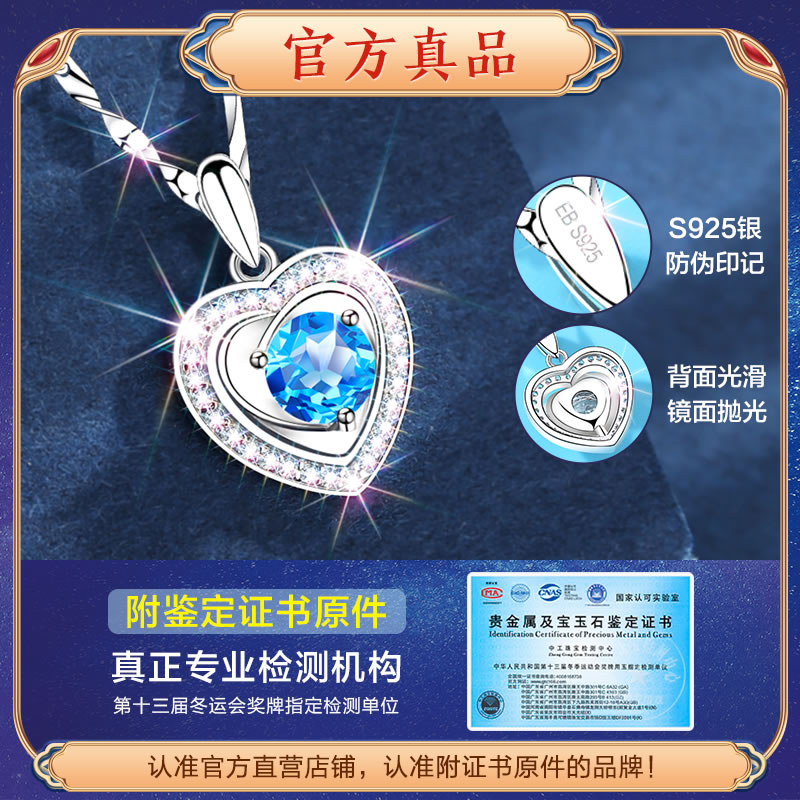 Ocean Heart Silver Necklace Female Sterling Silver Beating Heart Pendant Eternal Heart Jewelry Birthday Gift for Girlfriend