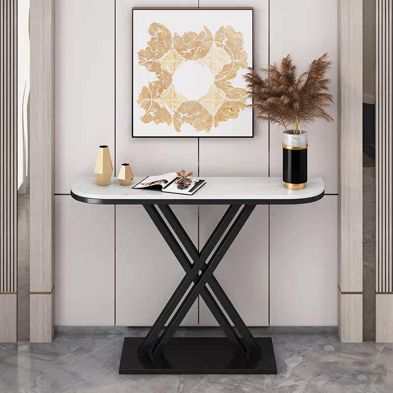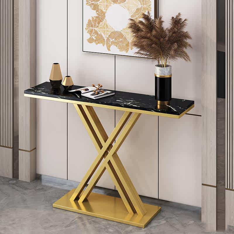 Rock-plate basalt tablelight luxury modern living room decorated against wall narrow table barrier entry to the basalt table