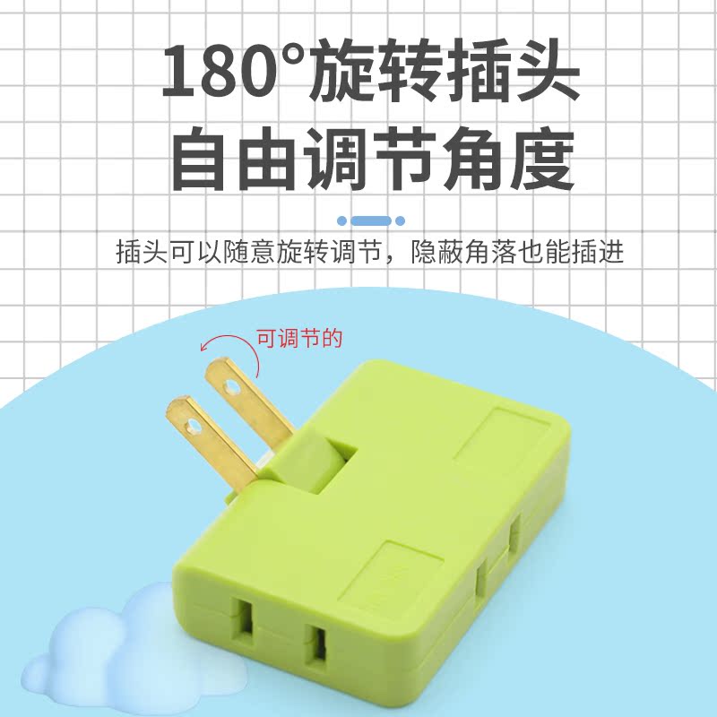 One-turn-three-two-pin plug two-jack 180-degree rotary power converter ultra-thin folding wireless expansion socket