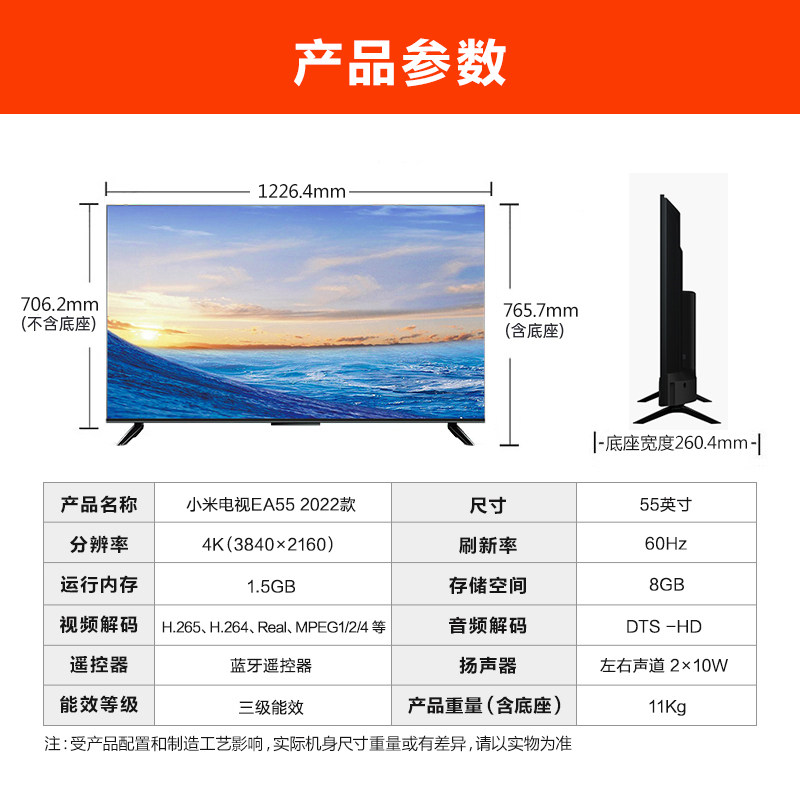 Xiaomi TV EA55 inch 2022 4K Ultra HD Metal Full Screen Smart Voice LCD TV 50