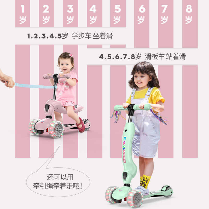 Child scooters scooter three-in-one 1-2-3-6-year-old girl baby with a car can take a ride and can be pushed