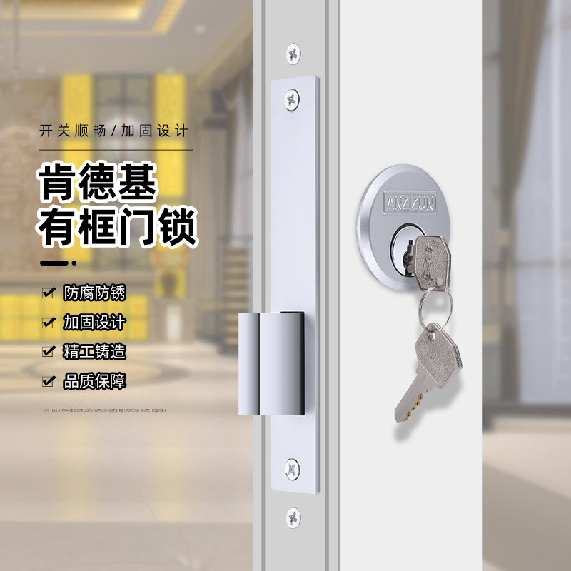 Aluminum alloy door with frame glass door lock aluminum profile lock bridge aluminum McDonald's Kendki push door lock lock