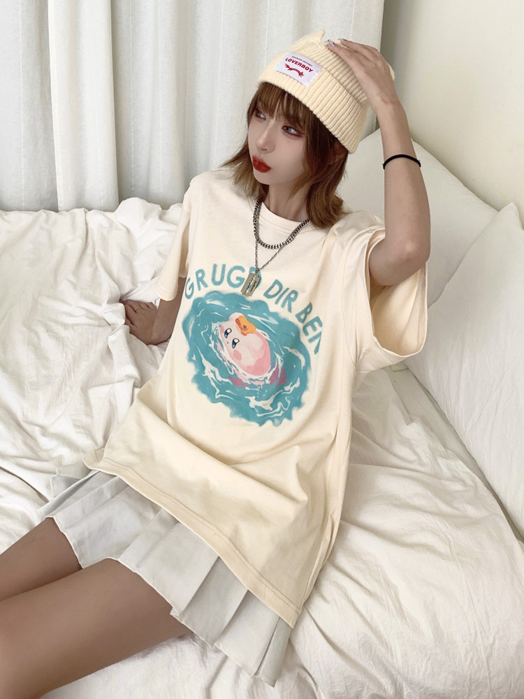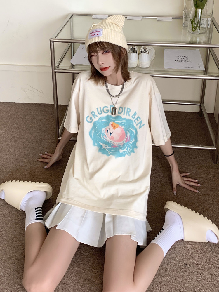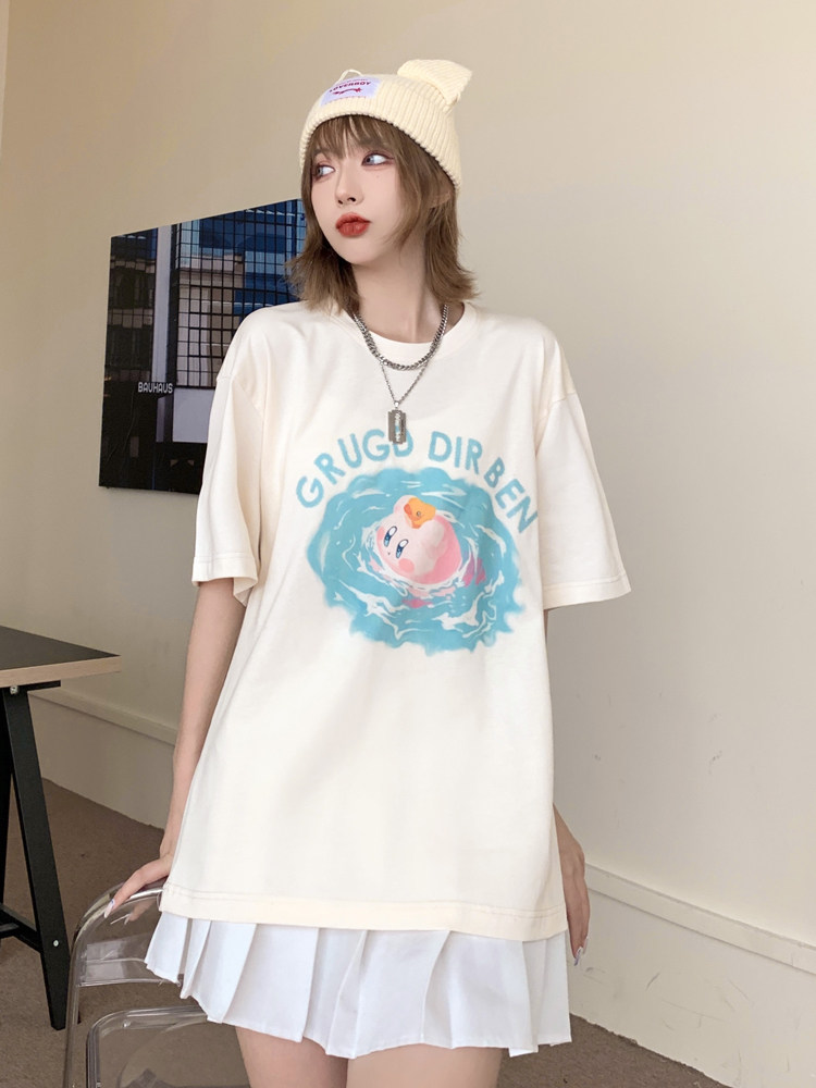 GRUGDDIRBEN Guochao Star Kirby short-sleeved t-shirt loose casual hip-hop original couple round neck top