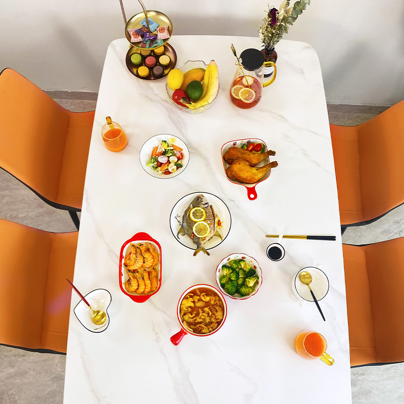 140*80cm one table and six chairs (rectangular) 4 dining chairs (message remark color) 160*90cm one table and four chairs (horse belly shape) 2 dining chairs (message remark color)