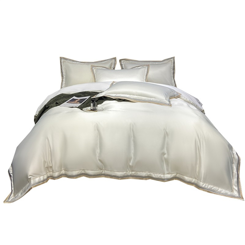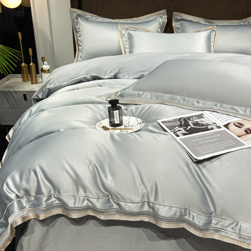 Minimalist light extravagant silk quilt cover four pieces of pure cotton all-cotton linen bed High-end Eu Style Pure color bed with supplies