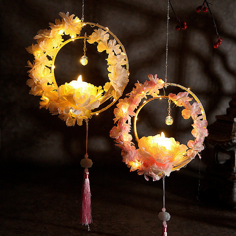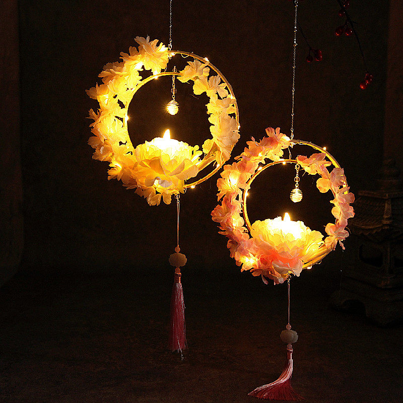 Double lamp Palace lamp female flowers Handmaid's hand Han Costume Palace China Wind Retro Style Lantern End Afternoon Middle Autumn Flow Su with lamp
