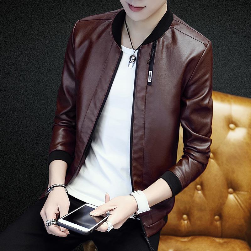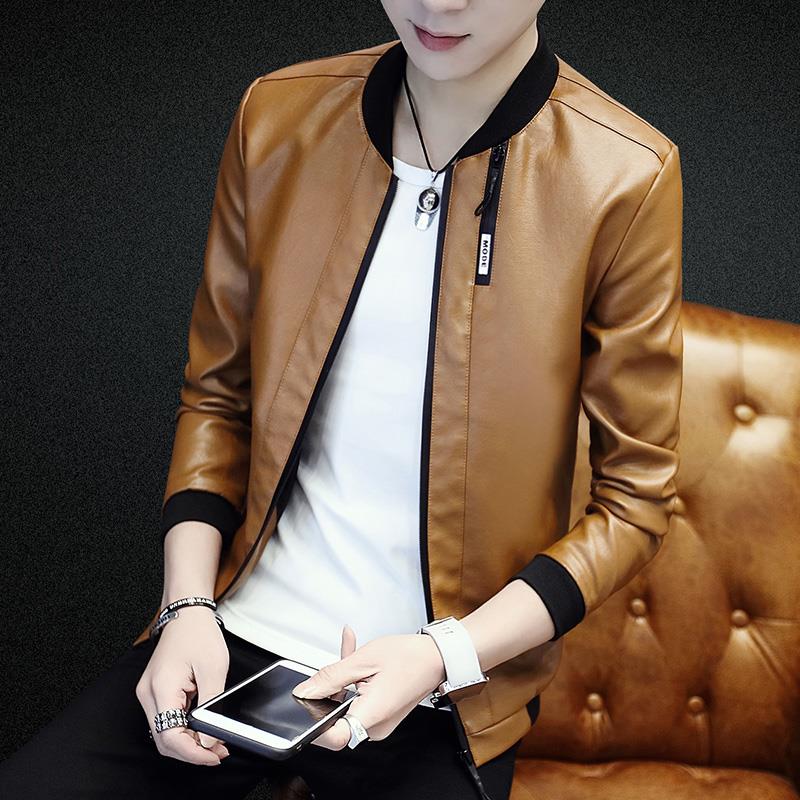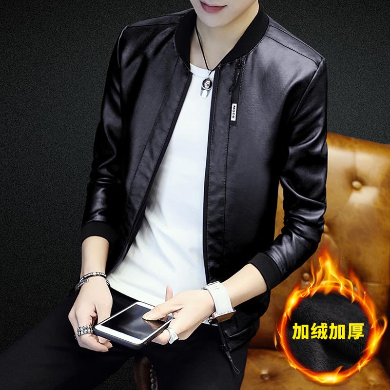 Romon Fur Coat Man Genuine Leather Spring Autumn Slim Fit Black Locomotive Stand-up Collar Leather Jacket Head Layer Bull Leather Men's Jacket