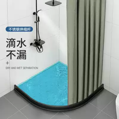 Magnetic shower curtain shower room dry and wet separation bathroom dressing room partition curtain arc Rod set no hole with magnet