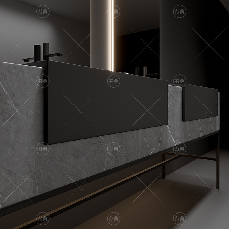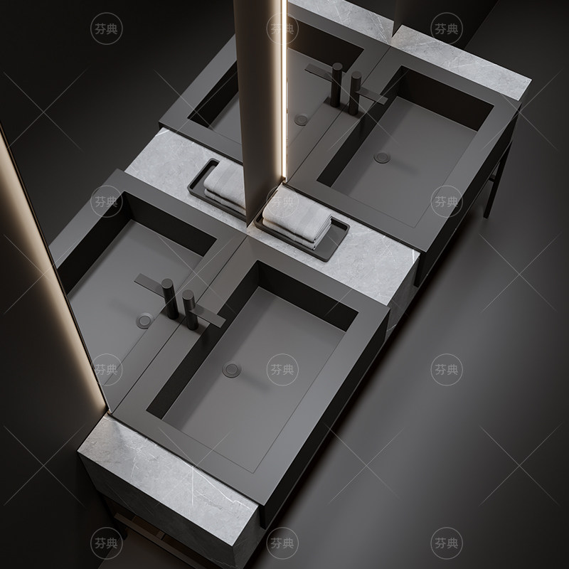 Designer double basin hotel minimalist rock slab integrated bathroom cabinet combined toilet washstand wash basin