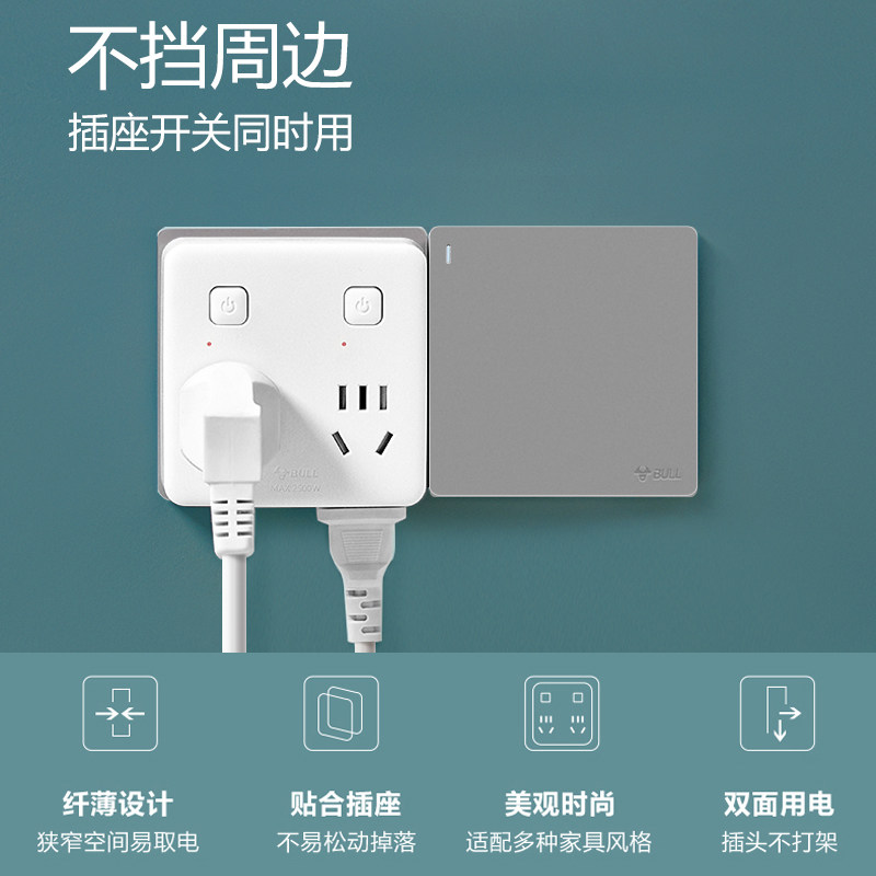 Bull smart socket wall 86 converter Ultra-thin multi-function household panel One-turn multi-expander without wire One-turn four-cover socket converter Bedside multi-purpose panel