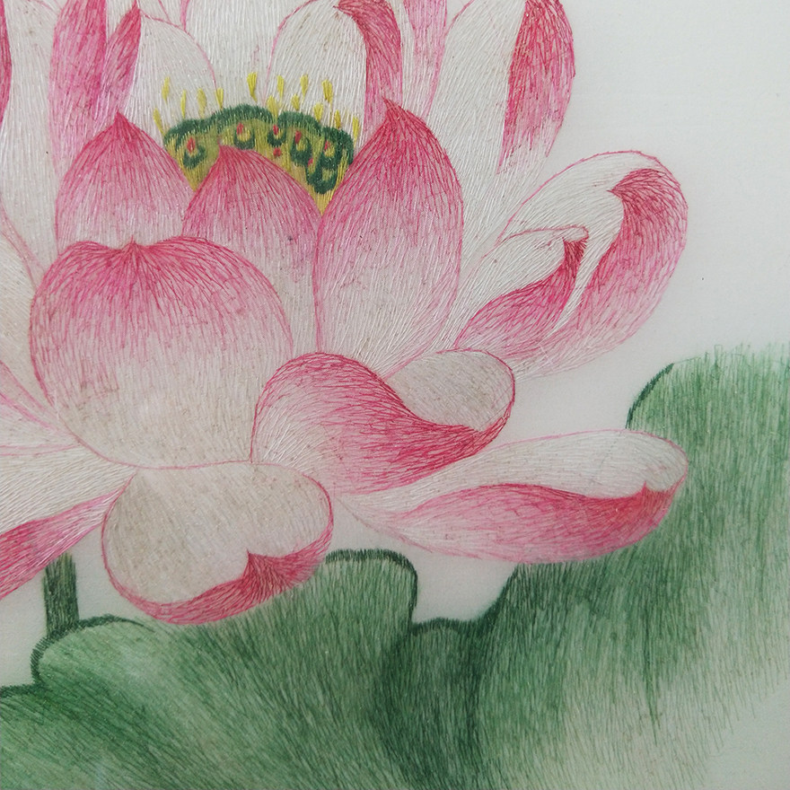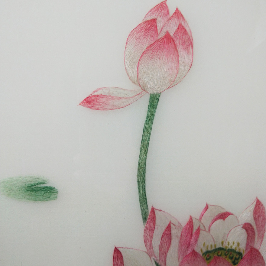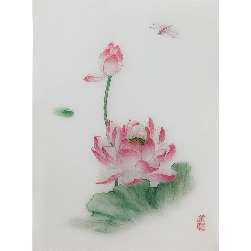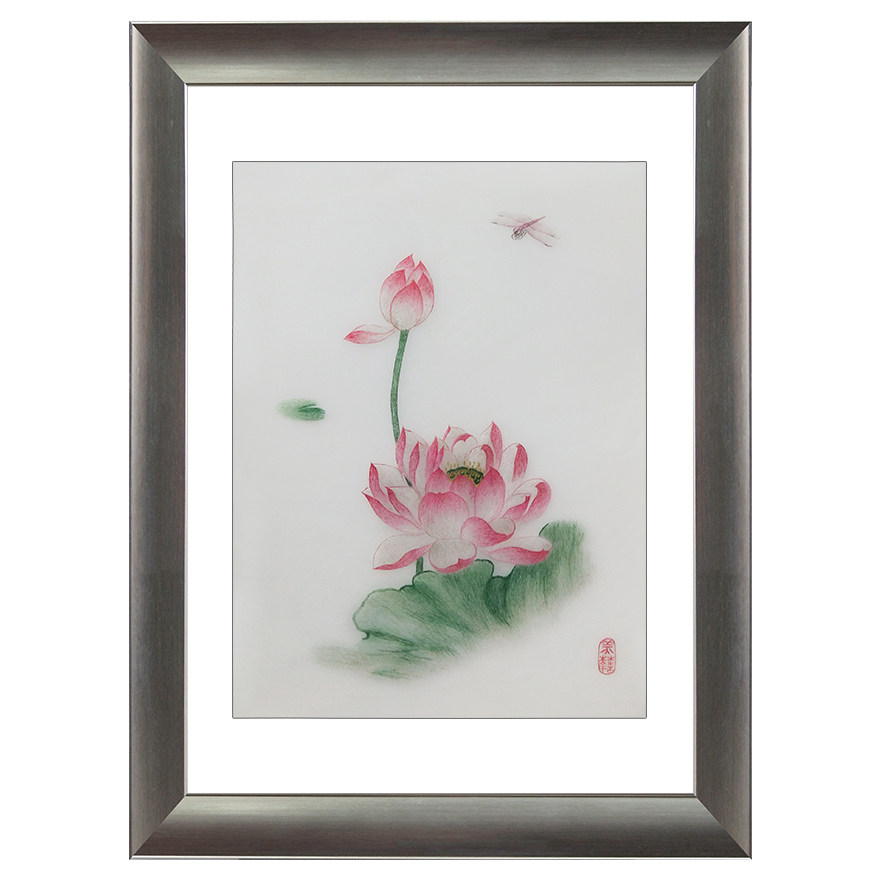 (Artisan Embroidery) pure hand embroidered living room decoration hanging painting < dragonfly lotus flower > Su embroidery real silk