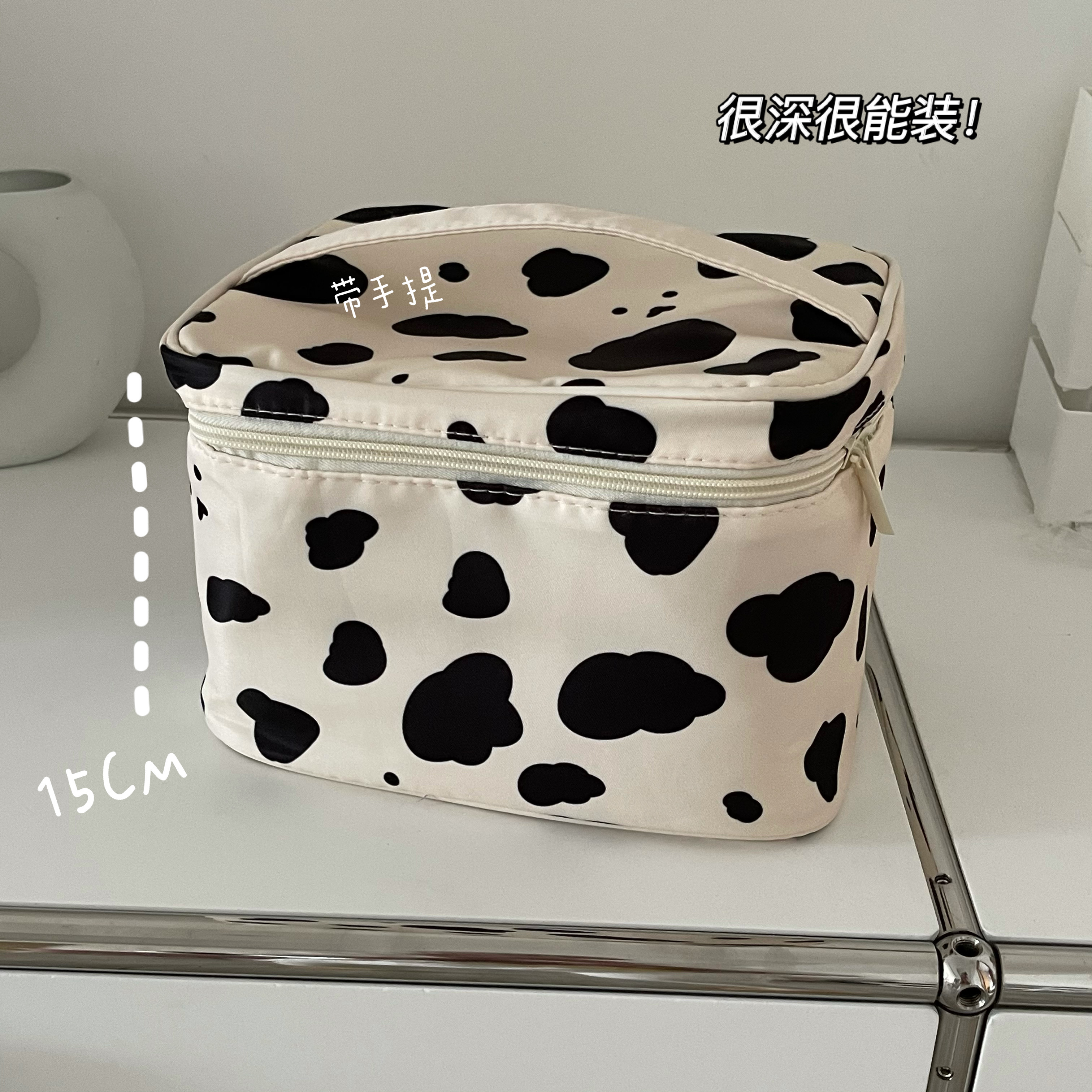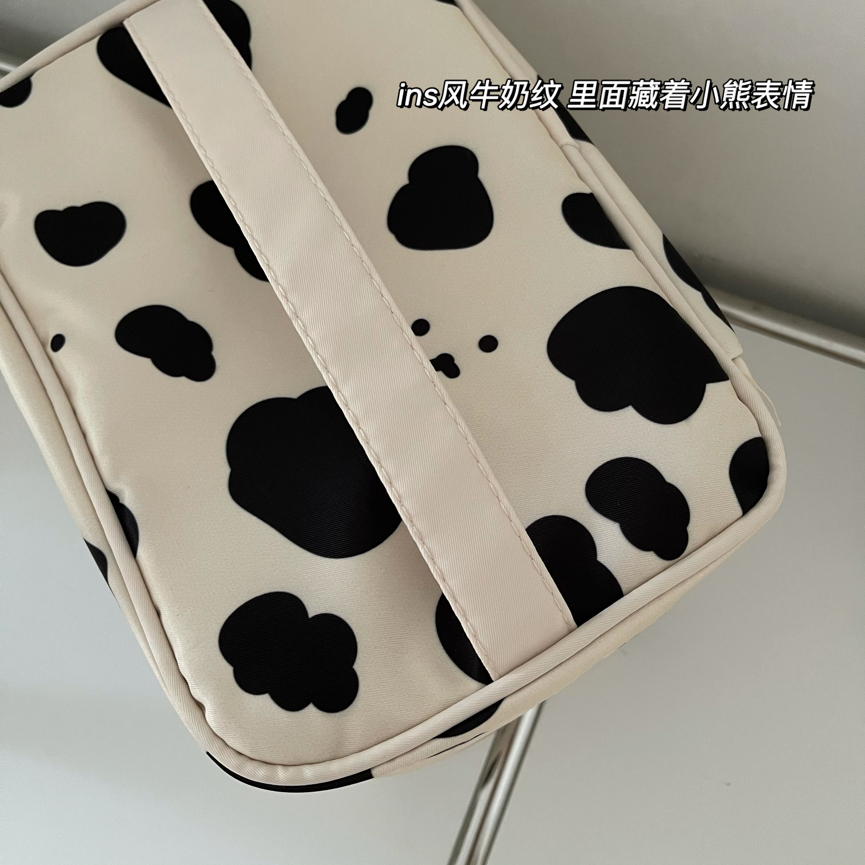 Large Capacity Dairy Cow Textured Makeup Bag Large Capacity Coffee Small Bear