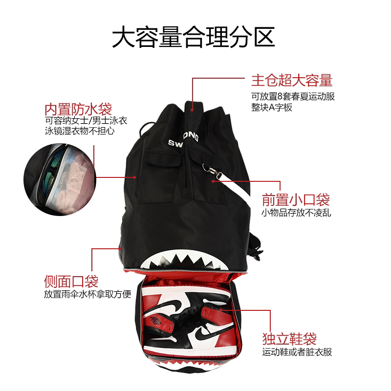 Dry and wet separation swimming bag fitness bag shoe compartment sports waterproof large-capacity backpack women's bundle pocket men's training