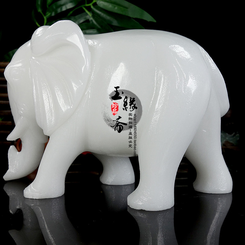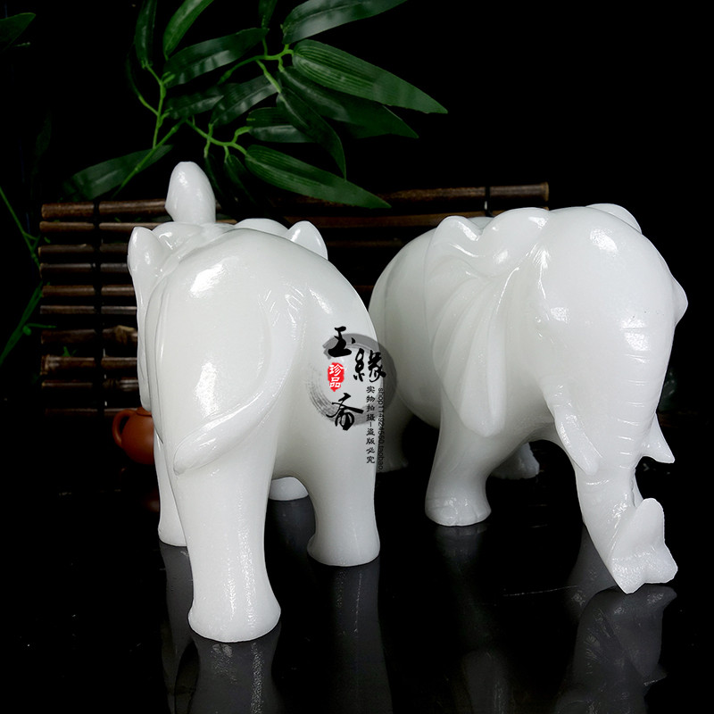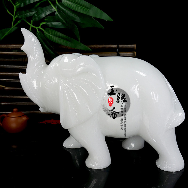 White Jade Elephant Swing Adorned Jade Sculpture Water Absorbing Elephant Natural Jade Elephant Natural Jade Elephant Feng Shui Furnishing Home Opening New Residence Business Gift