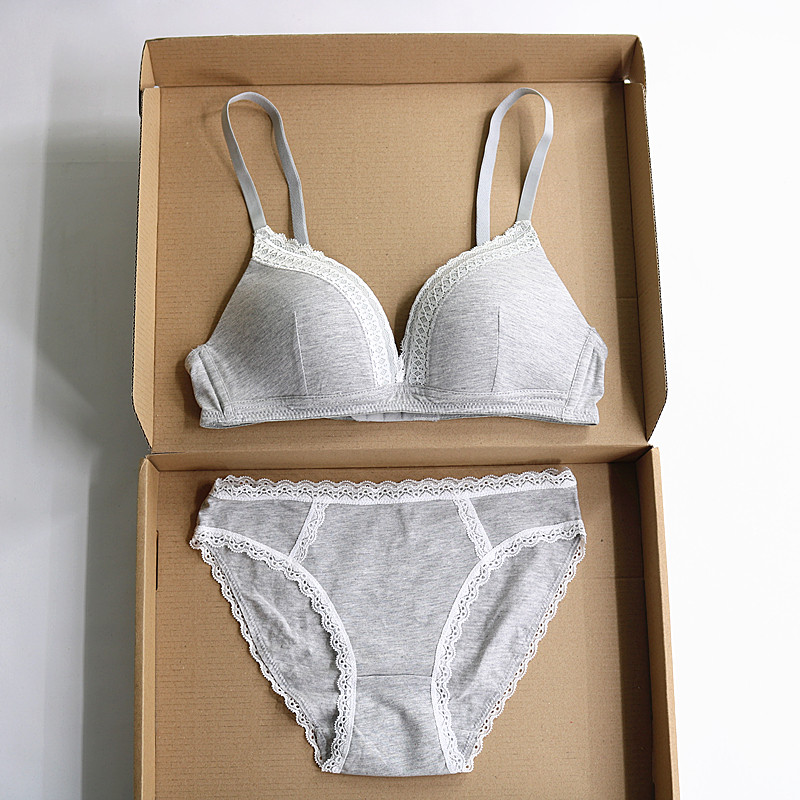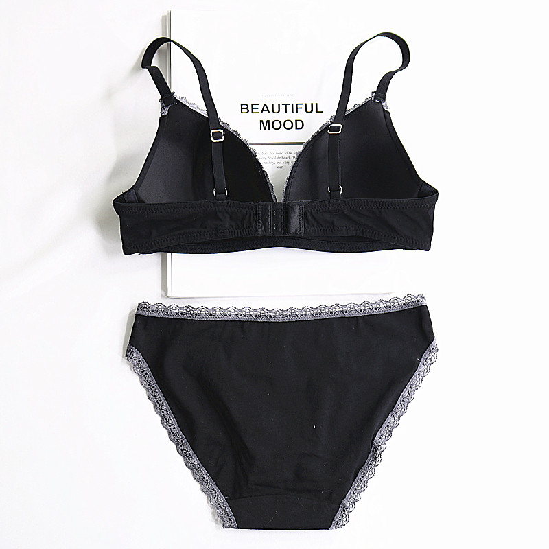 New products Foreign trade Europe and America Light and thin section pure colour Soft cotton non-steel ring Triangle cup lingerie suit Sexy lace lingerie