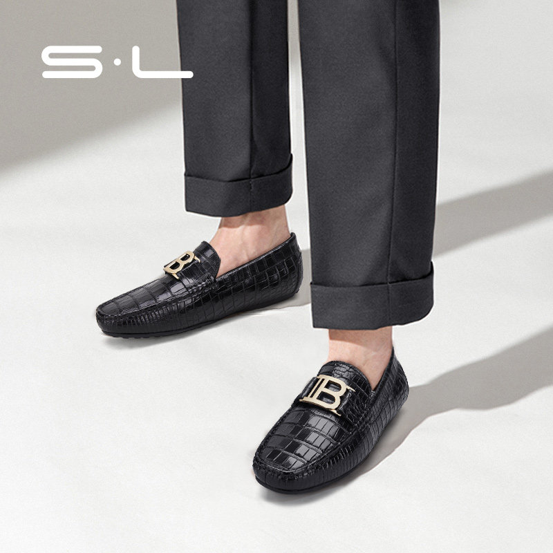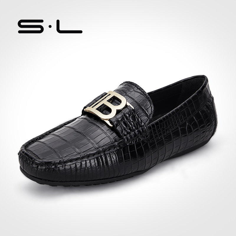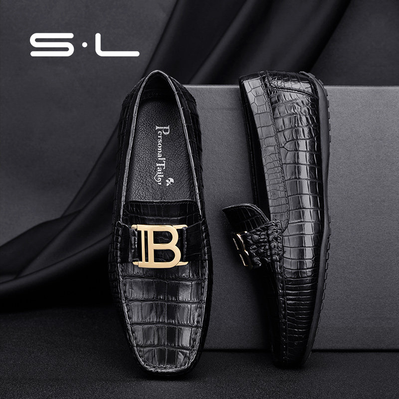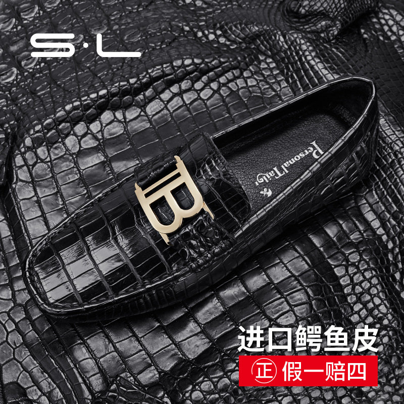 Sl crocodile skin men's shoes bean shoes men's leather 2022 new summer high-end Lefu a pedal lazy shoes