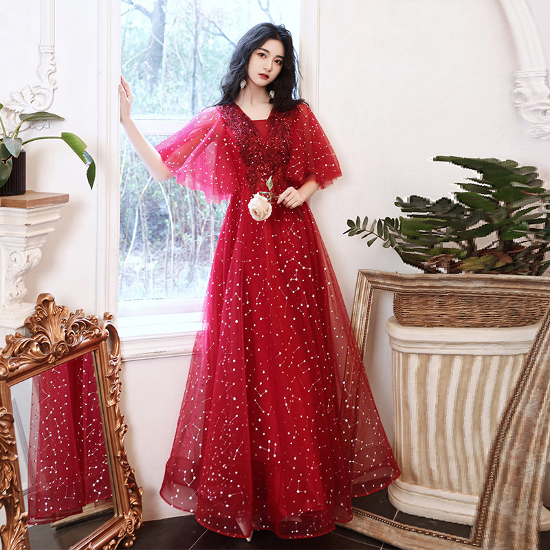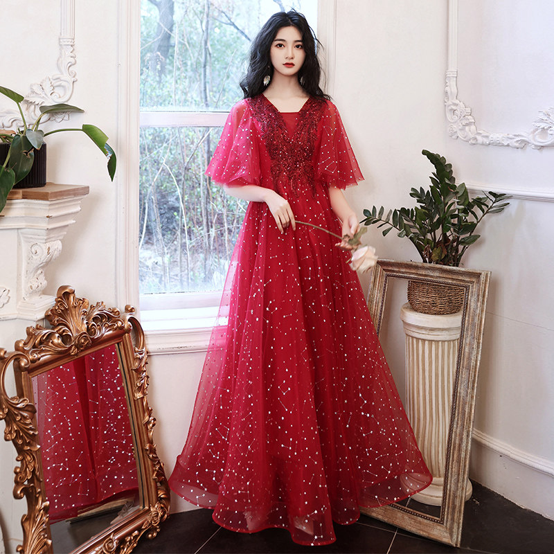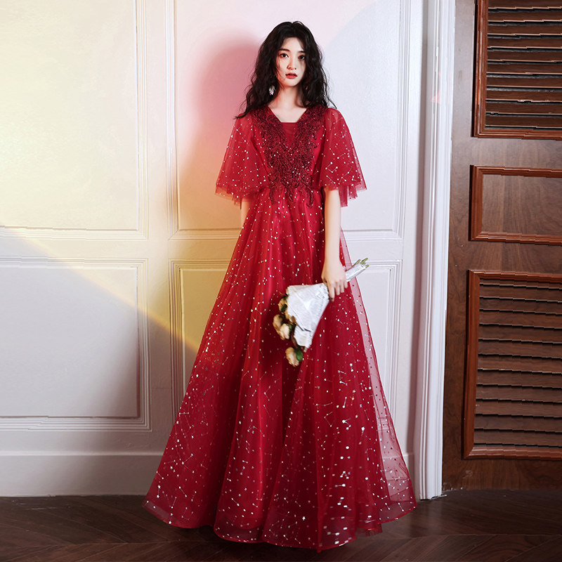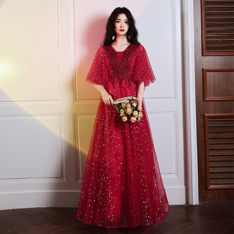 Bride toast 200 pounds 2022 new weight and big summer banquet fat mm slim evening dress woman