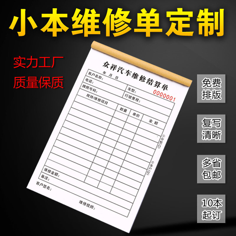 Auto repair list custom repair shop pick-up list two-in-three-in-one 4S shop vehicle beauty dispatch car wash list settlement list auto repair shop reception inspection construction quotation according to custom printing order
