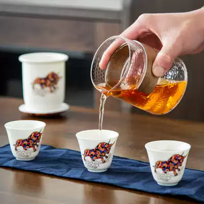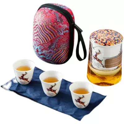 Kuaike travel tea set Household ceramic set Portable anti-scalding glass tea water separation filter One pot Three cups