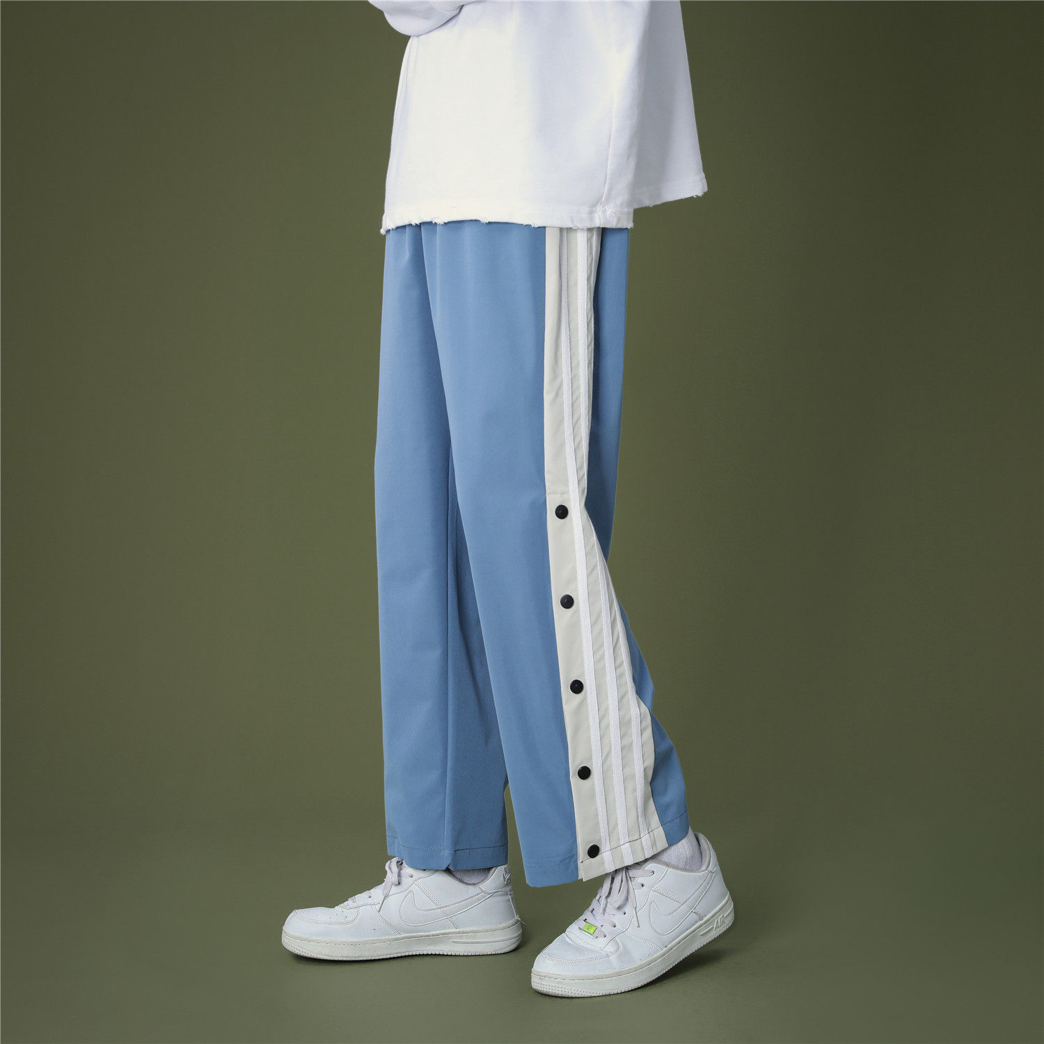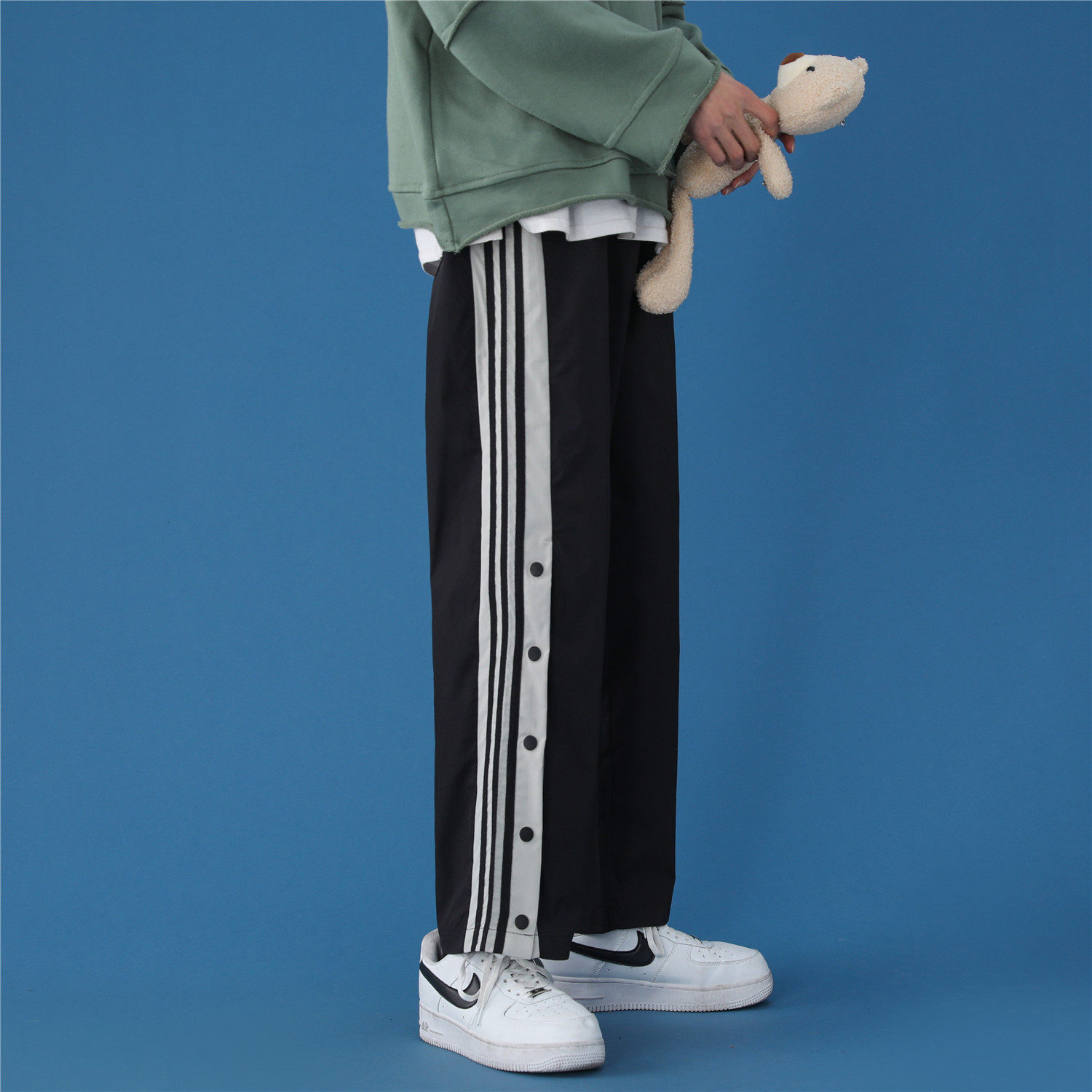 Spring Autumn Tide Card Row Button Pants Male Loose Large Size Slim size Fat Son Straight Cylinder Wide Pants Korean Version Trend Casual Long Pants