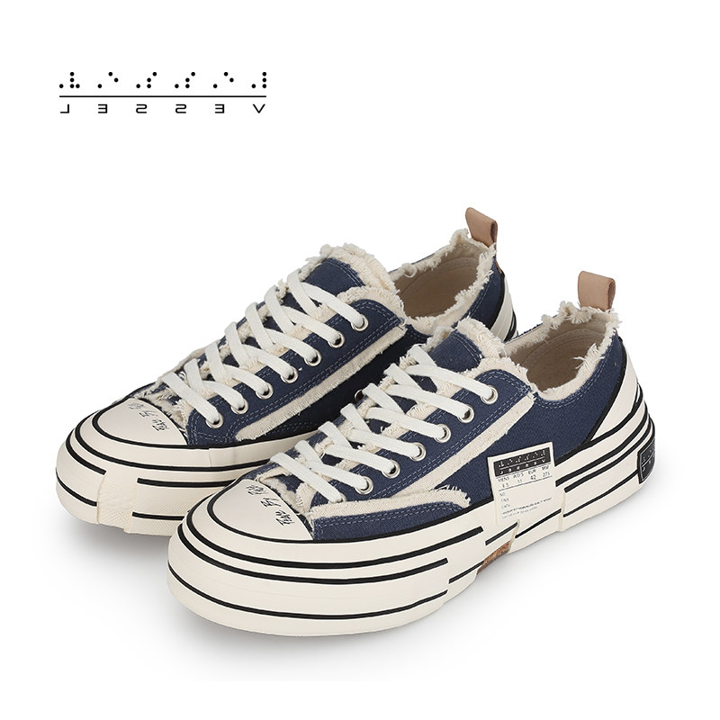 (Suit) xVESSEL2021 Year Navy Blue Spring Autumn Youth Low Bunch Lace Canvas Pure Color Vulcanising Shoes