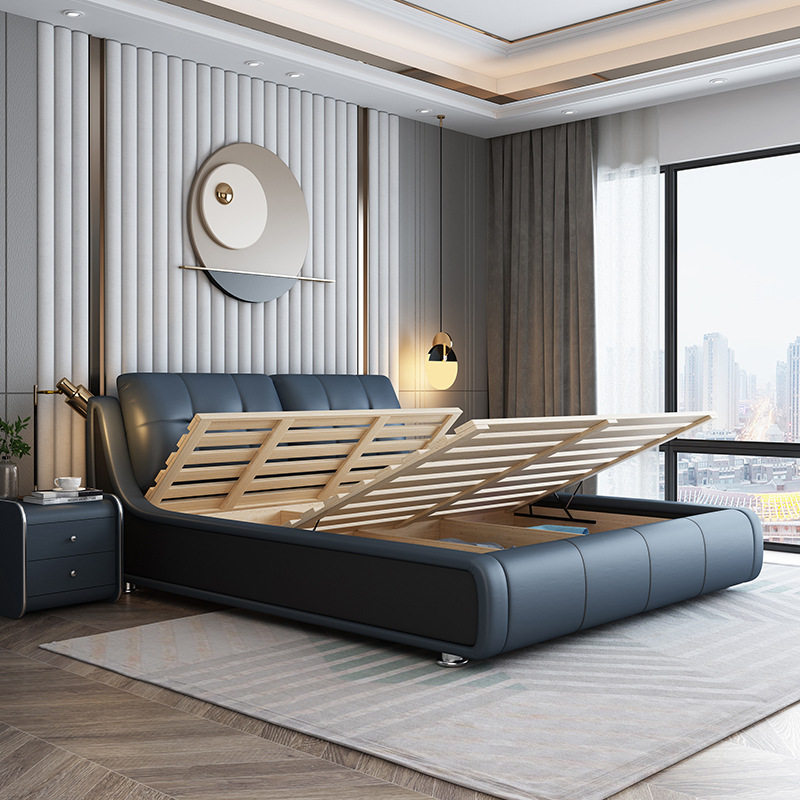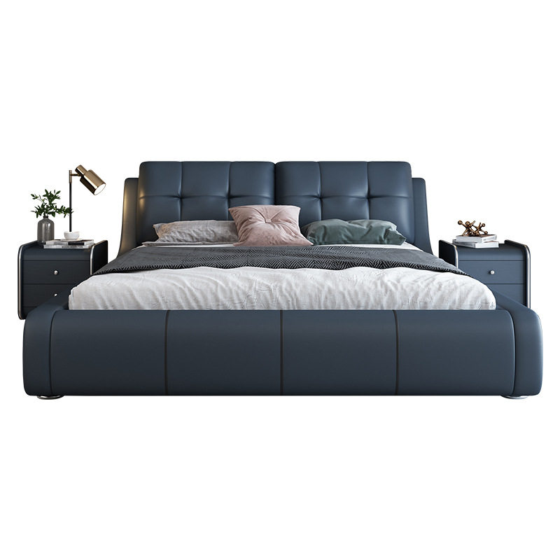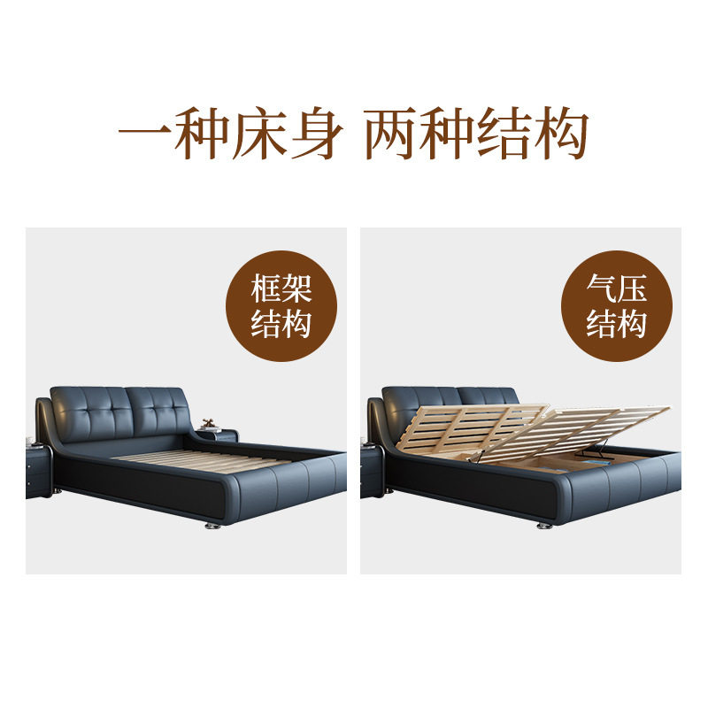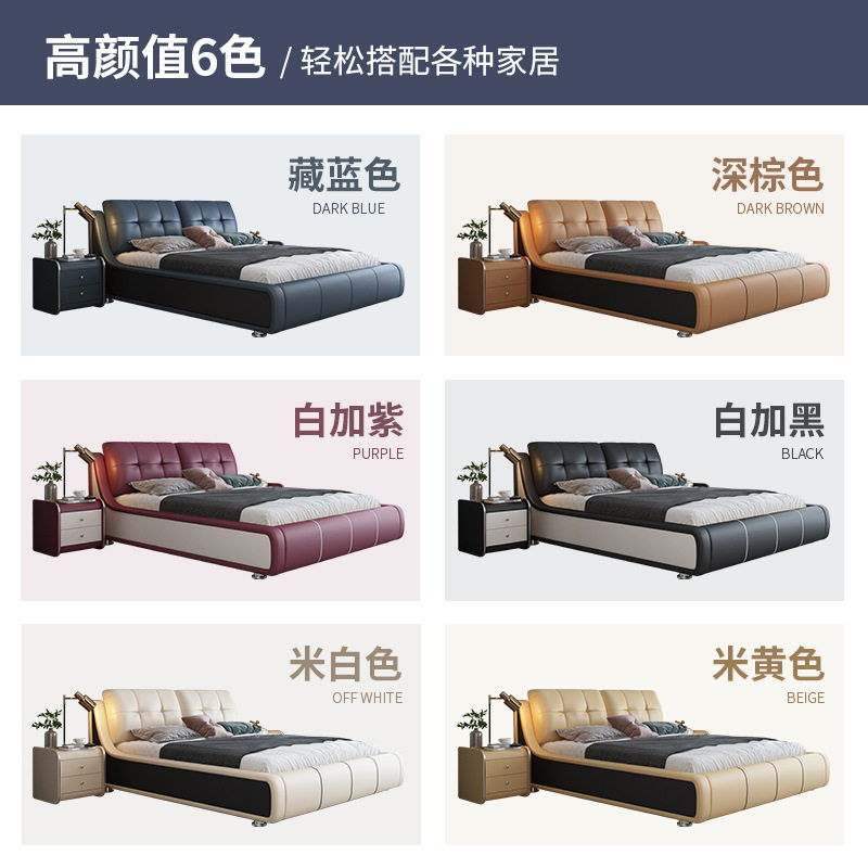 Leather bed Nordic wedding bed light luxury minimalist bedroom Italian bed 1 5 meters 1 8m double bed soft bag